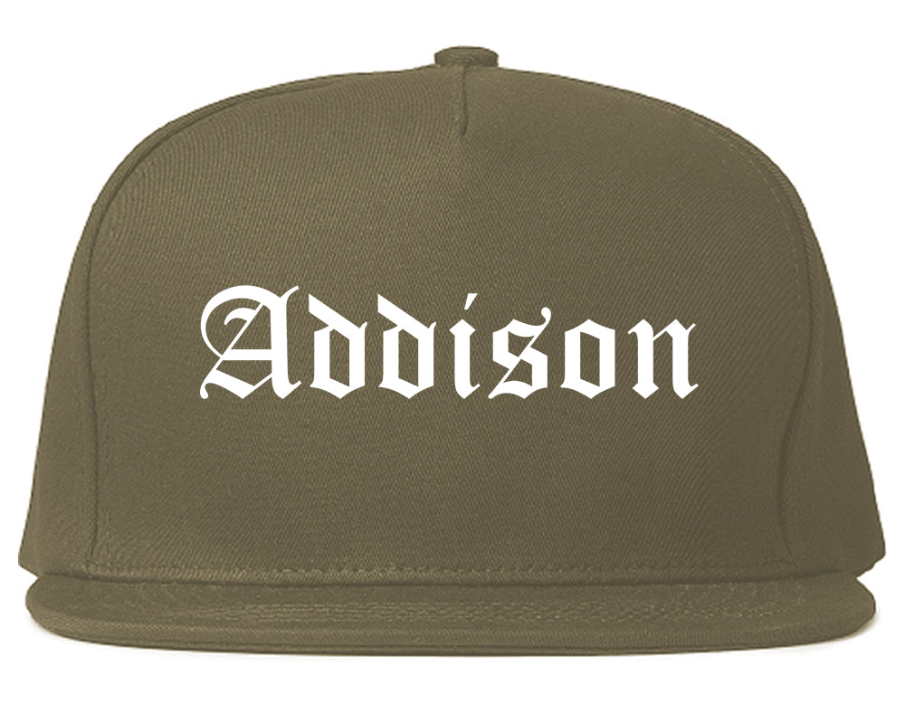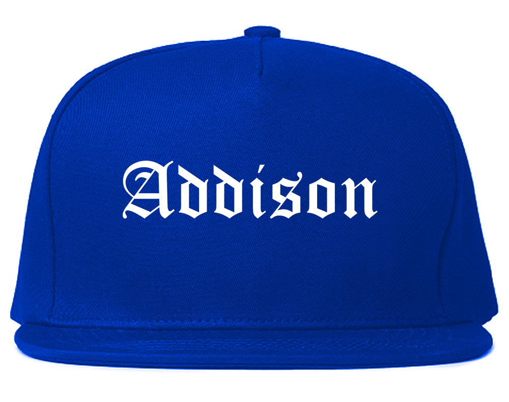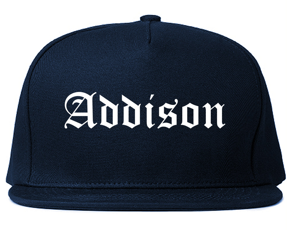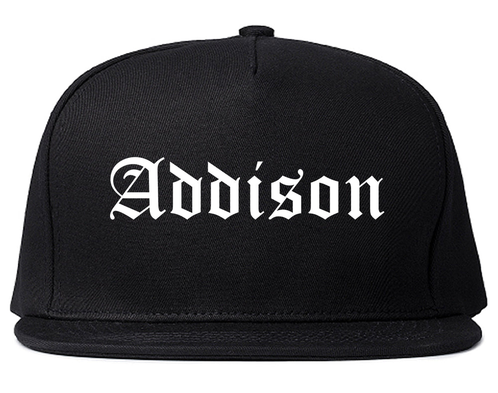 Addison Illinois IL Old English Mens Snapback Hat printed by Urban Gear. Rep your city or town in one of our hats for your state.