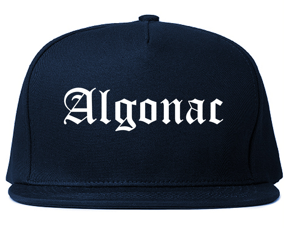 Algonac Michigan MI Old English Mens Snapback Hat printed by Urban Gear. Rep your city or town in one of our hats for your state.