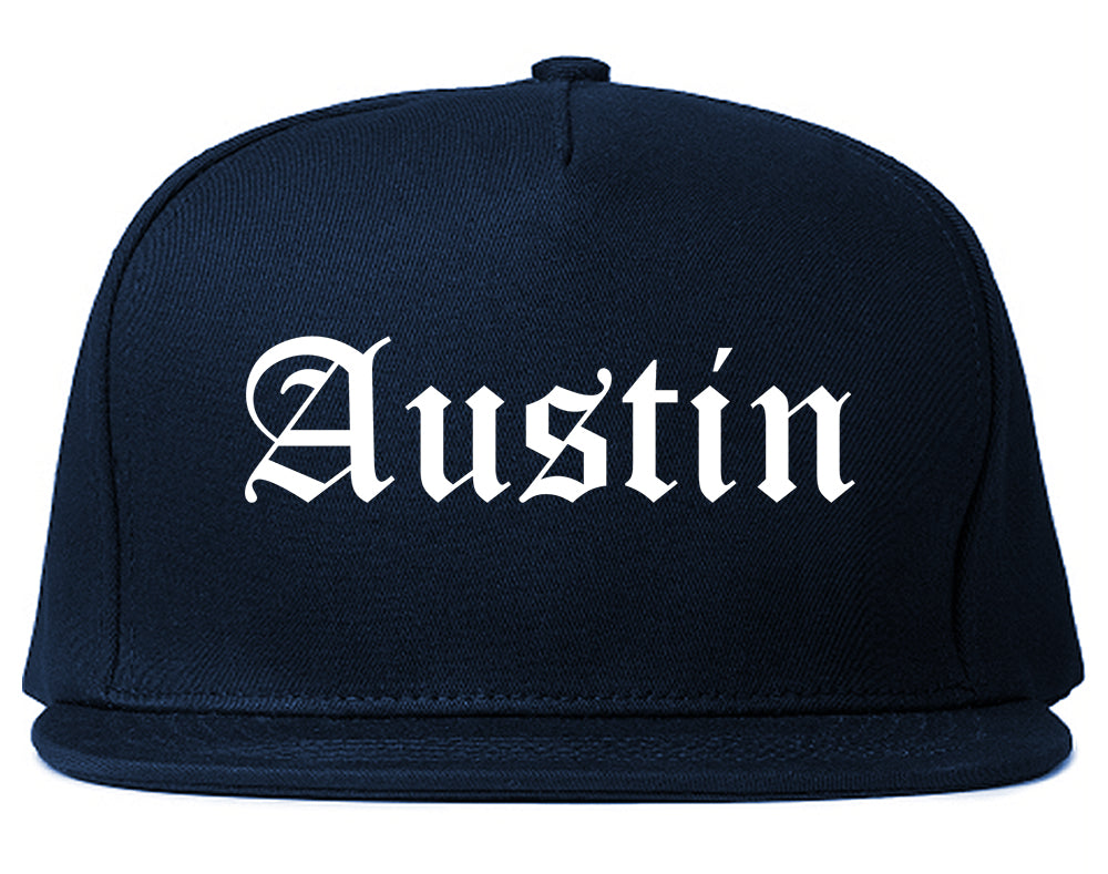 Austin Indiana IN Old English Mens Snapback Hat printed by Urban Gear. Rep your city or town in one of our hats for your state.