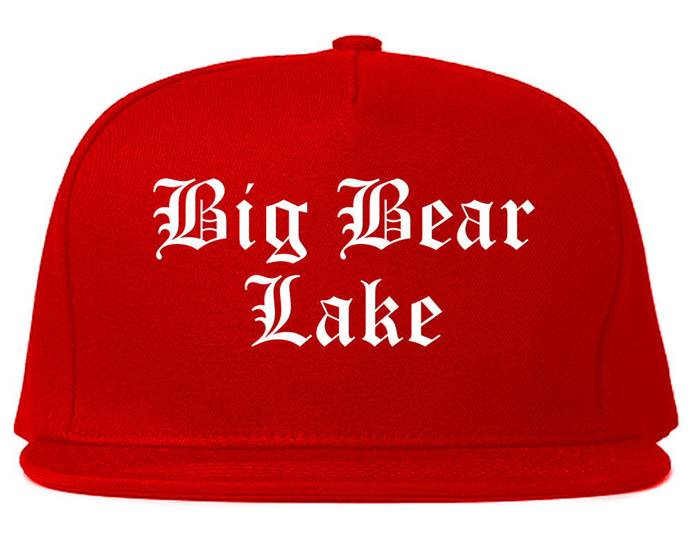 Big Bear Lake California CA Old English Mens Snapback Hat printed by Urban Gear. Rep your city or town in one of our hats for your state.