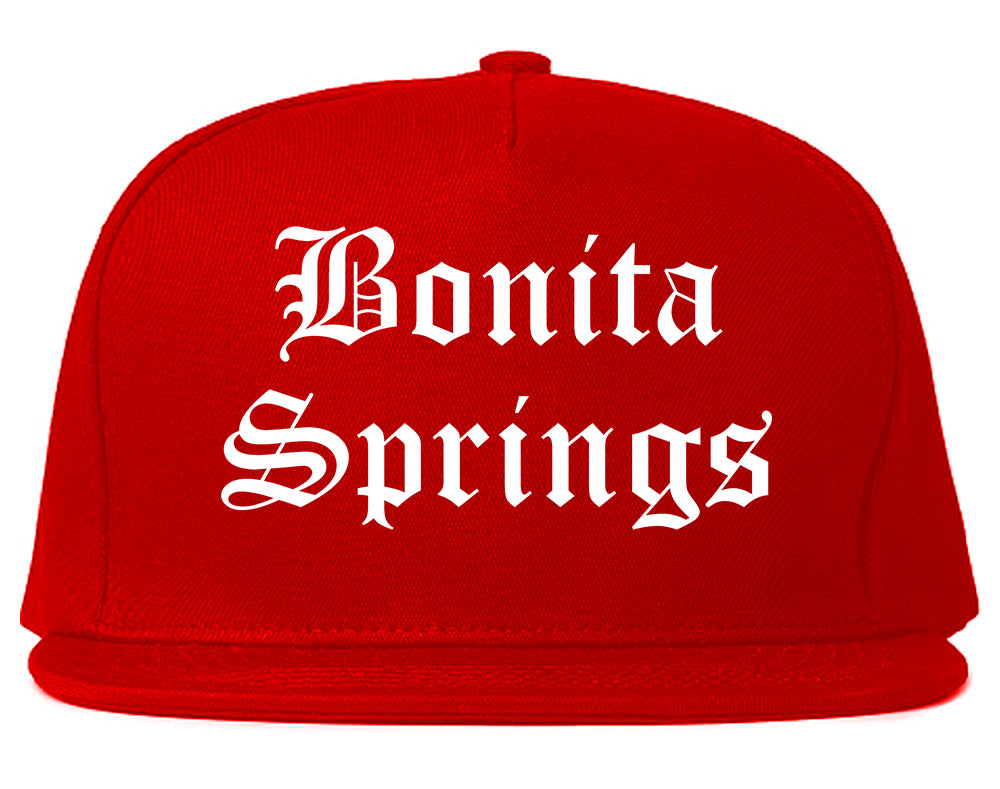 Bonita Springs Florida FL Old English Mens Snapback Hat printed by Urban Gear. Rep your city or town in one of our hats for your state.