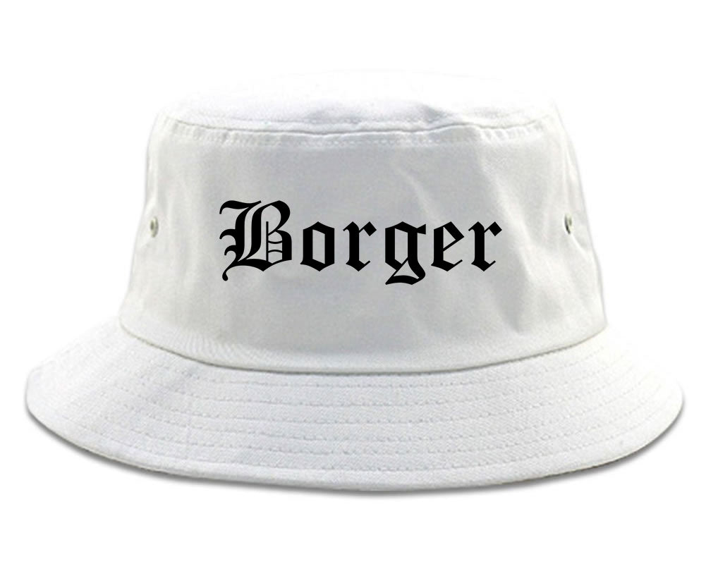 Borger Texas TX Old English Mens Bucket Hat printed by Urban Gear. Rep your city or town in one of our hats for your state.