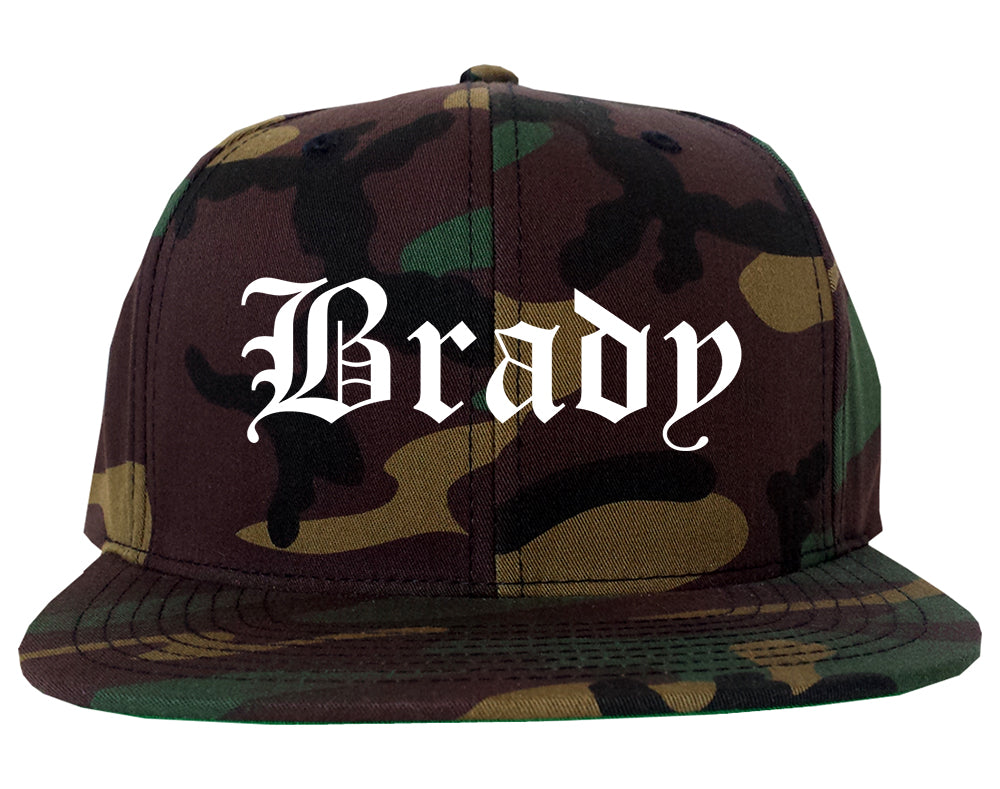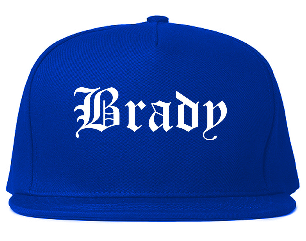 Brady Texas TX Old English Mens Snapback Hat printed by Urban Gear. Rep your city or town in one of our hats for your state.