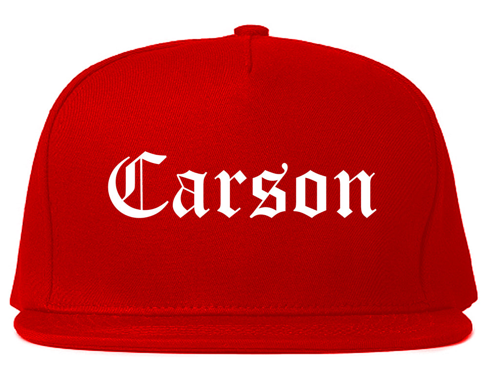 Carson California CA Old English Mens Snapback Hat printed by Urban Gear. Rep your city or town in one of our hats for your state.