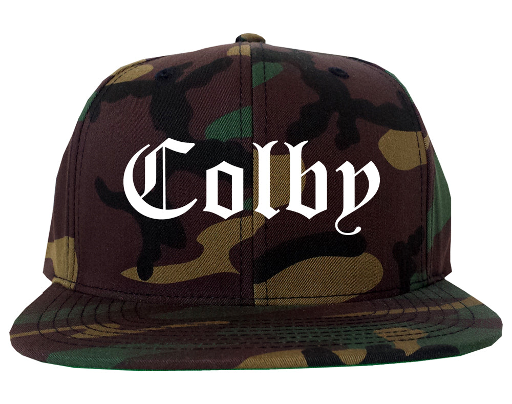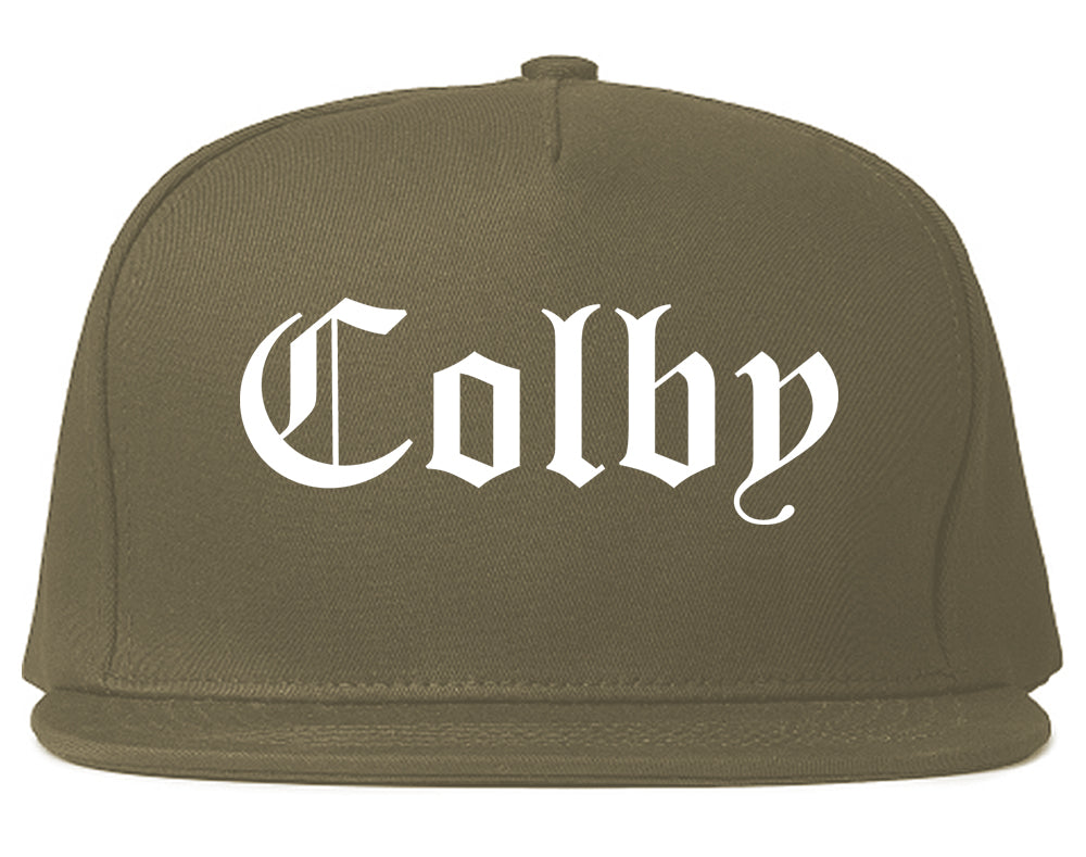 Colby Kansas KS Old English Mens Snapback Hat printed by Urban Gear. Rep your city or town in one of our hats for your state.