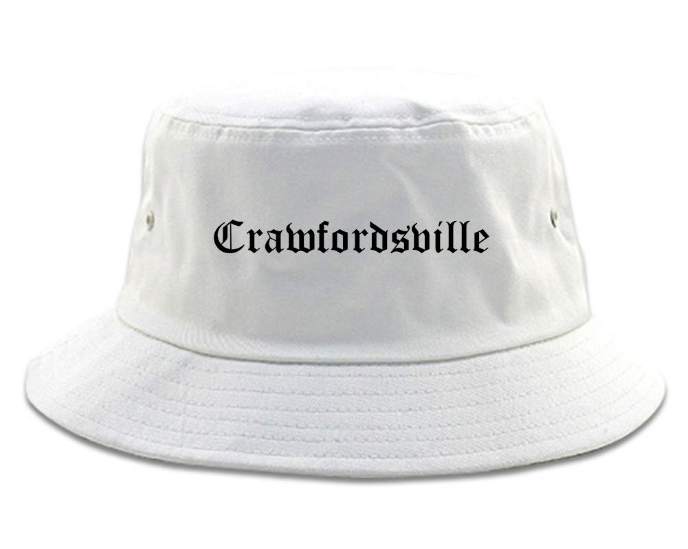 Crawfordsville Indiana IN Old English Mens Bucket Hat printed by Urban Gear. Rep your city or town in one of our hats for your state.
