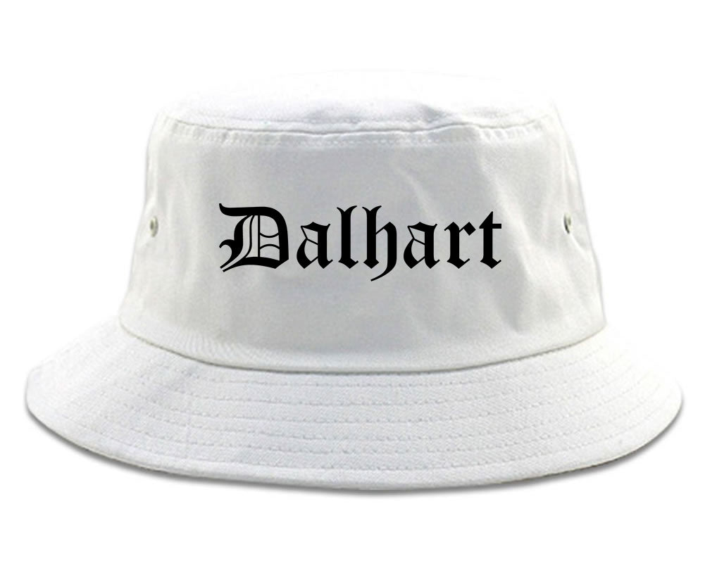 Dalhart Texas TX Old English Mens Bucket Hat printed by Urban Gear. Rep your city or town in one of our hats for your state.