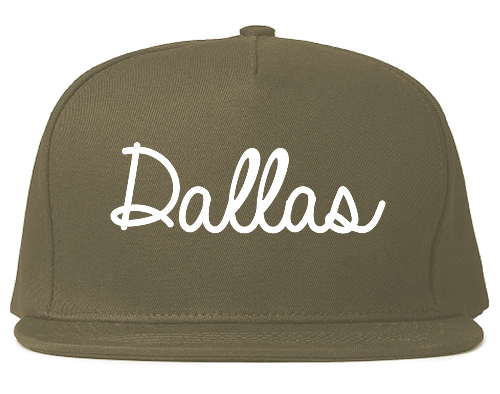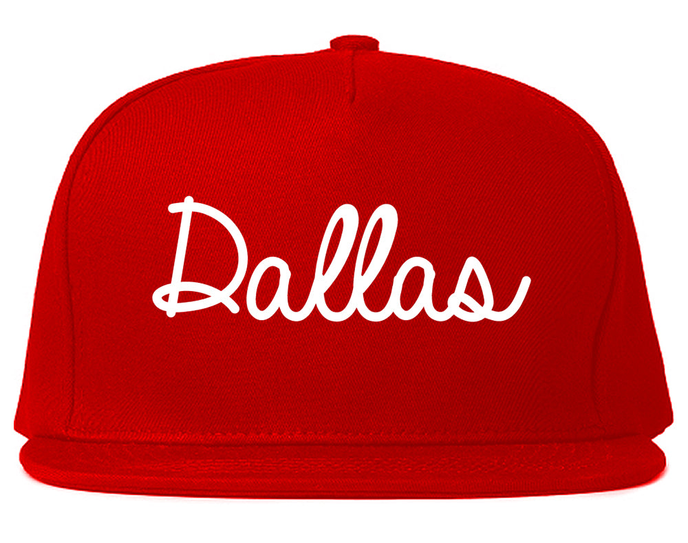 Dallas Texas TX Script Mens Snapback Hat Cap printed by Urban Gear. Rep your city or town in one of our hats for your state.