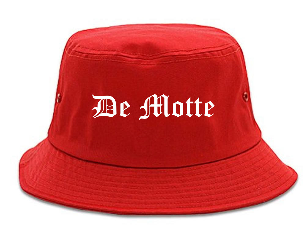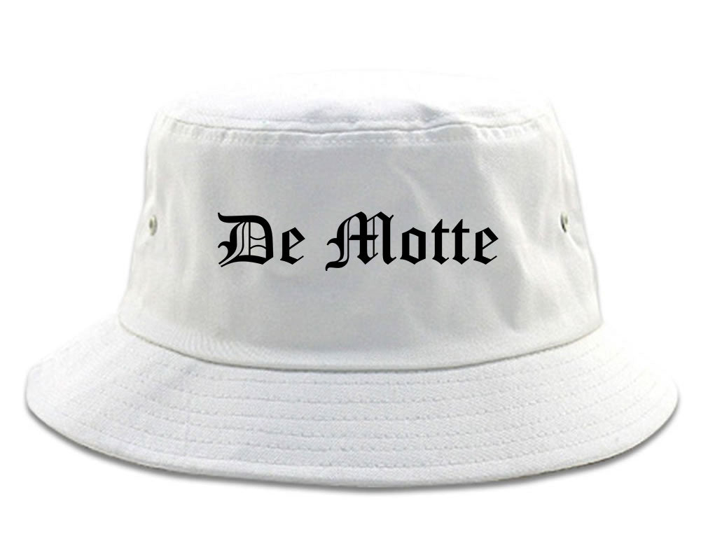 De Motte Indiana IN Old English Mens Bucket Hat printed by Urban Gear. Rep your city or town in one of our hats for your state.