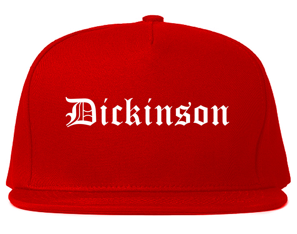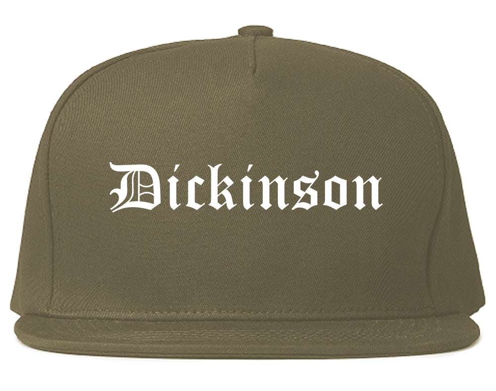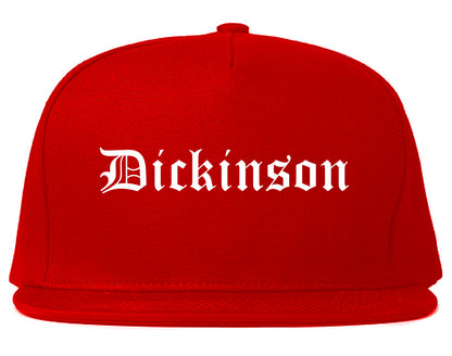 Dickinson Texas TX Old English Mens Snapback Hat printed by Urban Gear. Rep your city or town in one of our hats for your state.