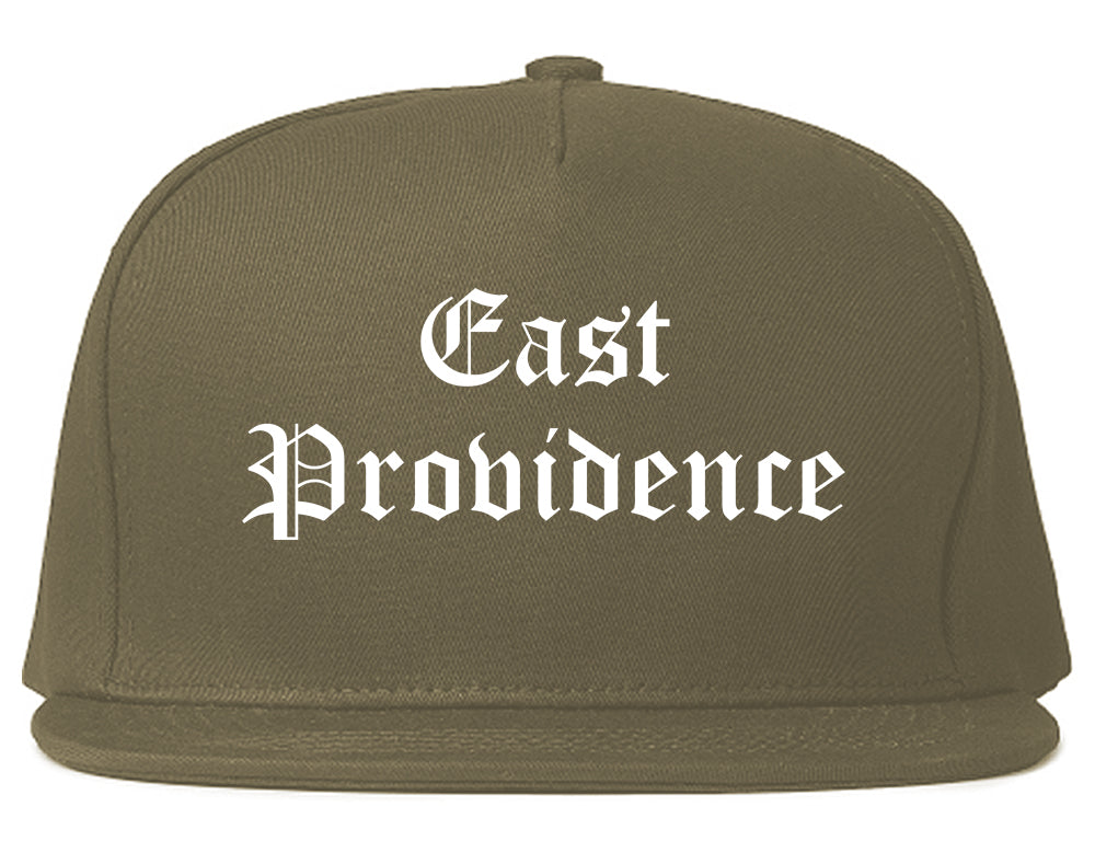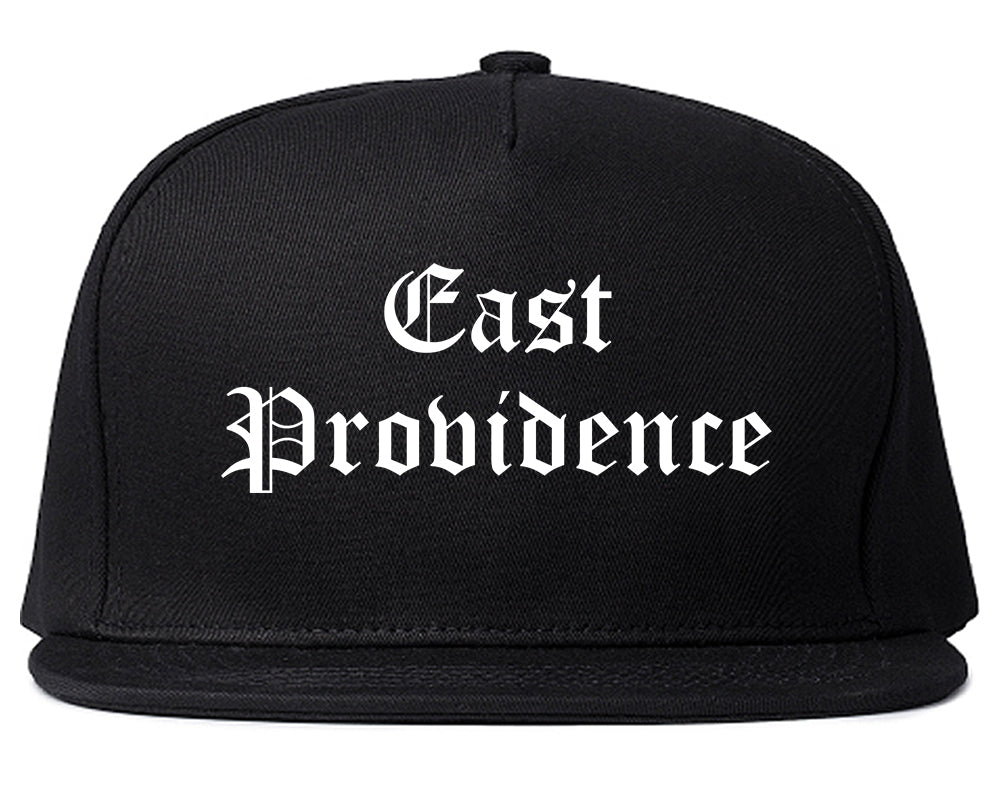 East Providence Rhode Island RI Old English Mens Snapback Hat printed by Urban Gear. Rep your city or town in one of our hats for your state.