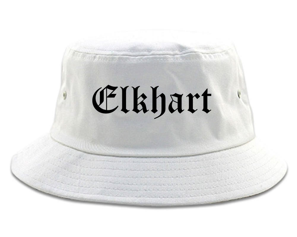 Elkhart Indiana IN Old English Mens Bucket Hat printed by Urban Gear. Rep your city or town in one of our hats for your state.