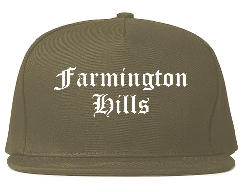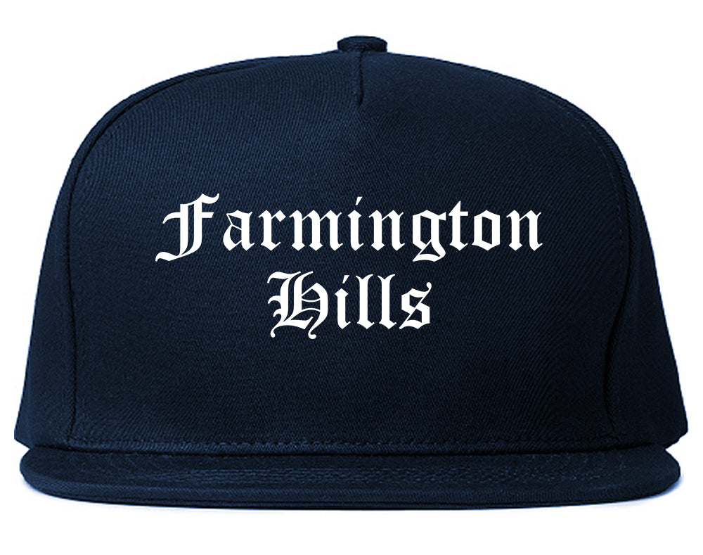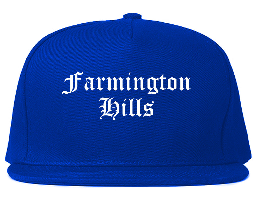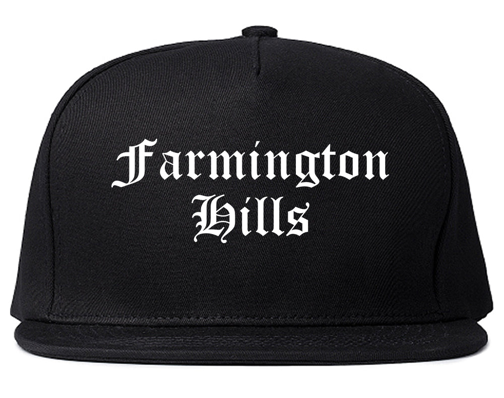 Farmington Hills Michigan MI Old English Mens Snapback Hat printed by Urban Gear. Rep your city or town in one of our hats for your state.
