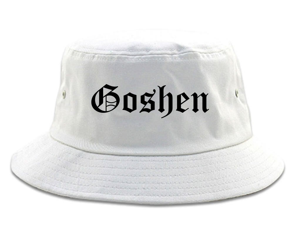 Goshen New York NY Old English Mens Bucket Hat printed by Urban Gear. Rep your city or town in one of our hats for your state.