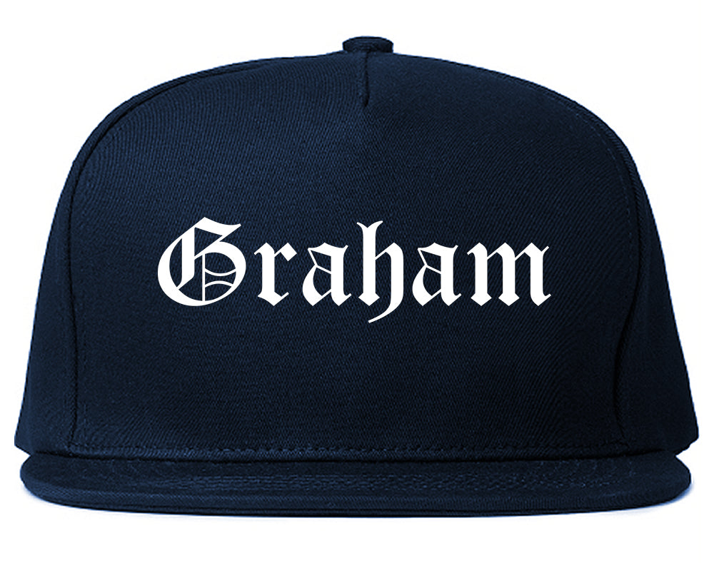 Graham Texas TX Old English Mens Snapback Hat printed by Urban Gear. Rep your city or town in one of our hats for your state.