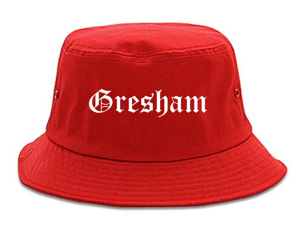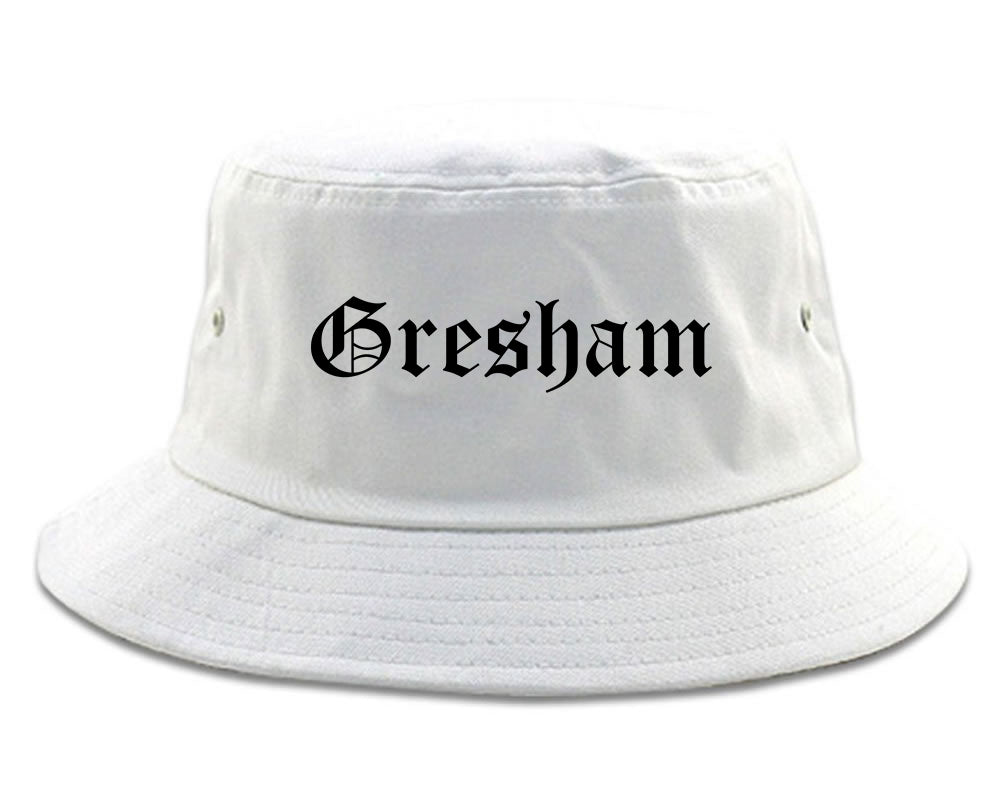 Gresham Oregon OR Old English Mens Bucket Hat printed by Urban Gear. Rep your city or town in one of our hats for your state.