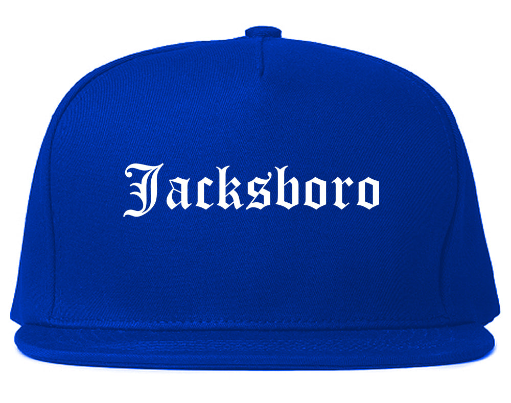 Jacksboro Texas TX Old English Mens Snapback Hat printed by Urban Gear. Rep your city or town in one of our hats for your state.