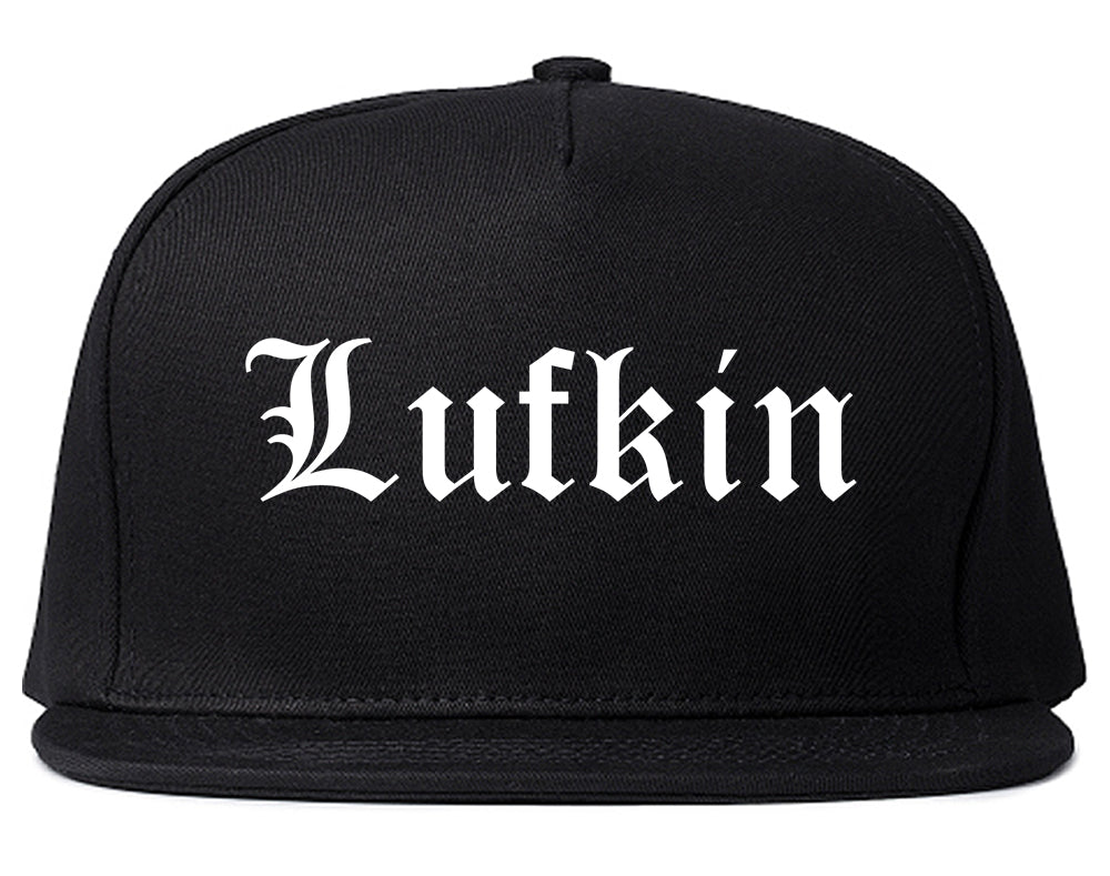 Lufkin Texas TX Old English Mens Snapback Hat printed by Urban Gear. Rep your city or town in one of our hats for your state.