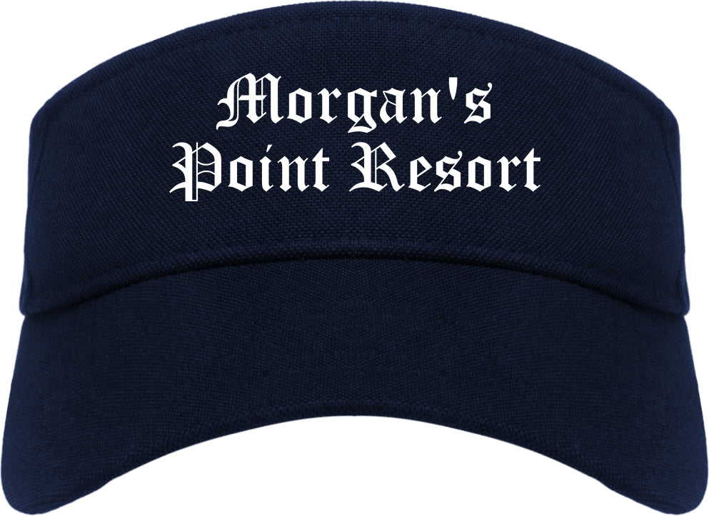 Morgan's Point Resort Texas TX Old English Mens Visor Cap Hat printed by Urban Gear. Rep your city or town in one of our sun visor hats for your state. Perfect for both men and women.