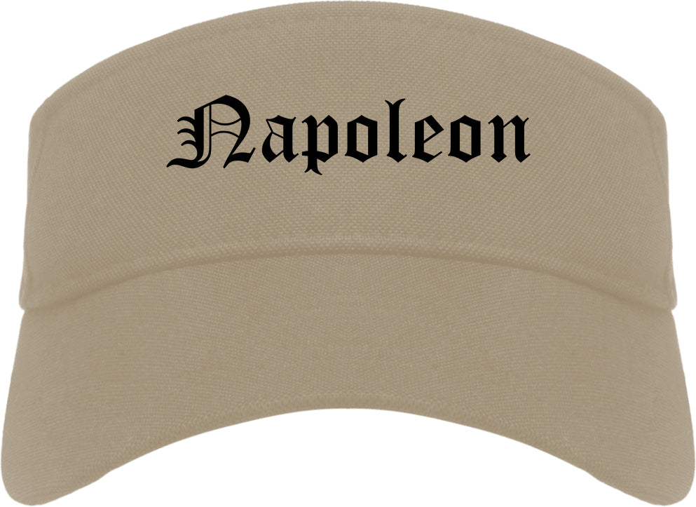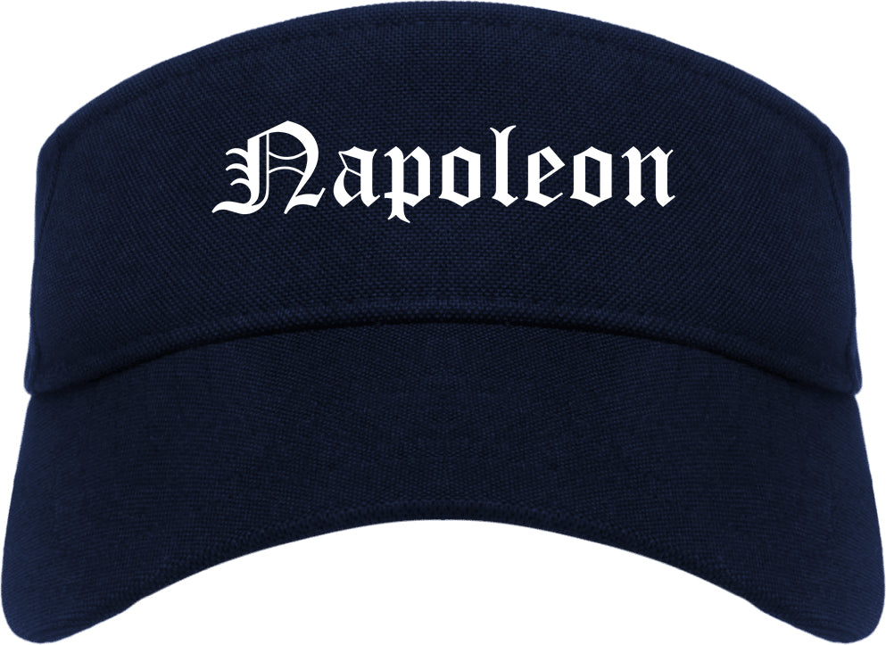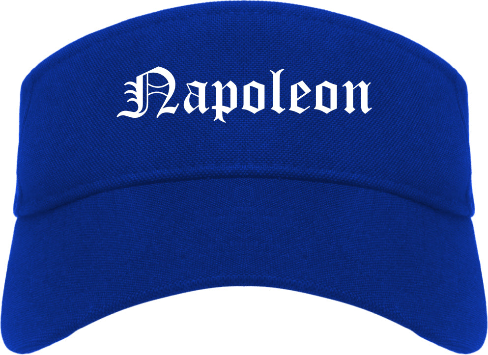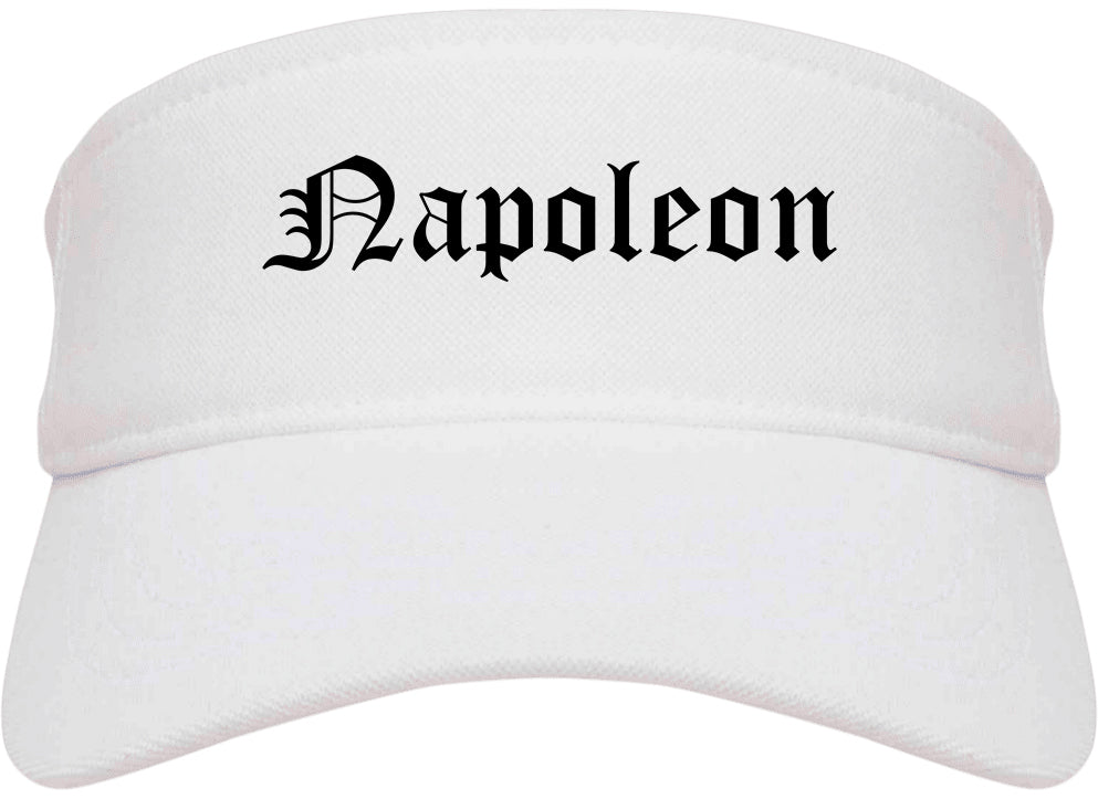 Napoleon Ohio OH Old English Mens Visor Cap Hat printed by Urban Gear. Rep your city or town in one of our sun visor hats for your state. Perfect for both men and women.
