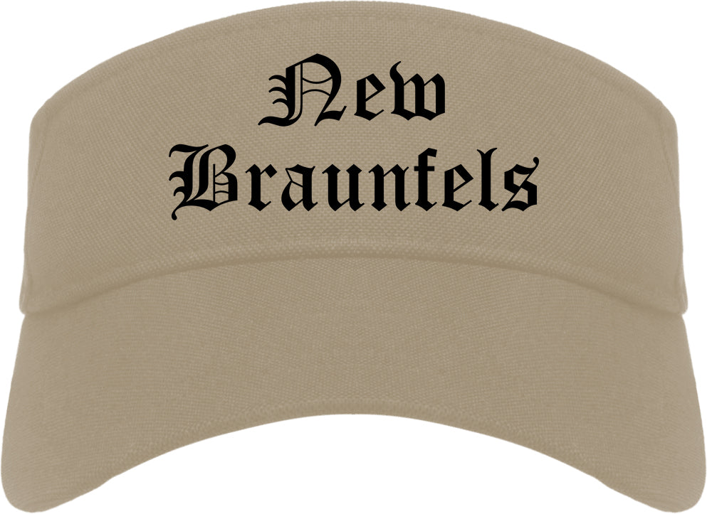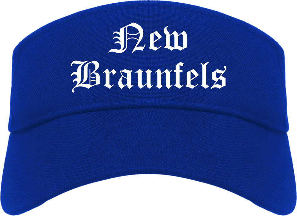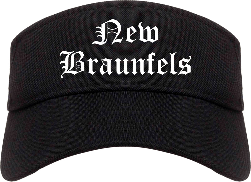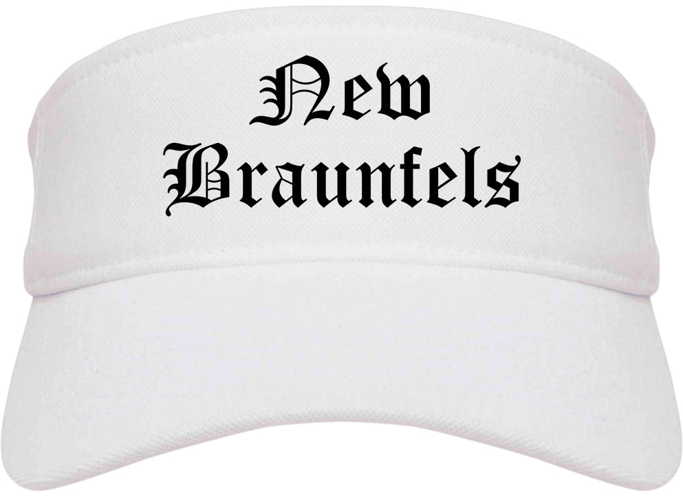 New Braunfels Texas TX Old English Mens Visor Cap Hat printed by Urban Gear. Rep your city or town in one of our sun visor hats for your state. Perfect for both men and women.