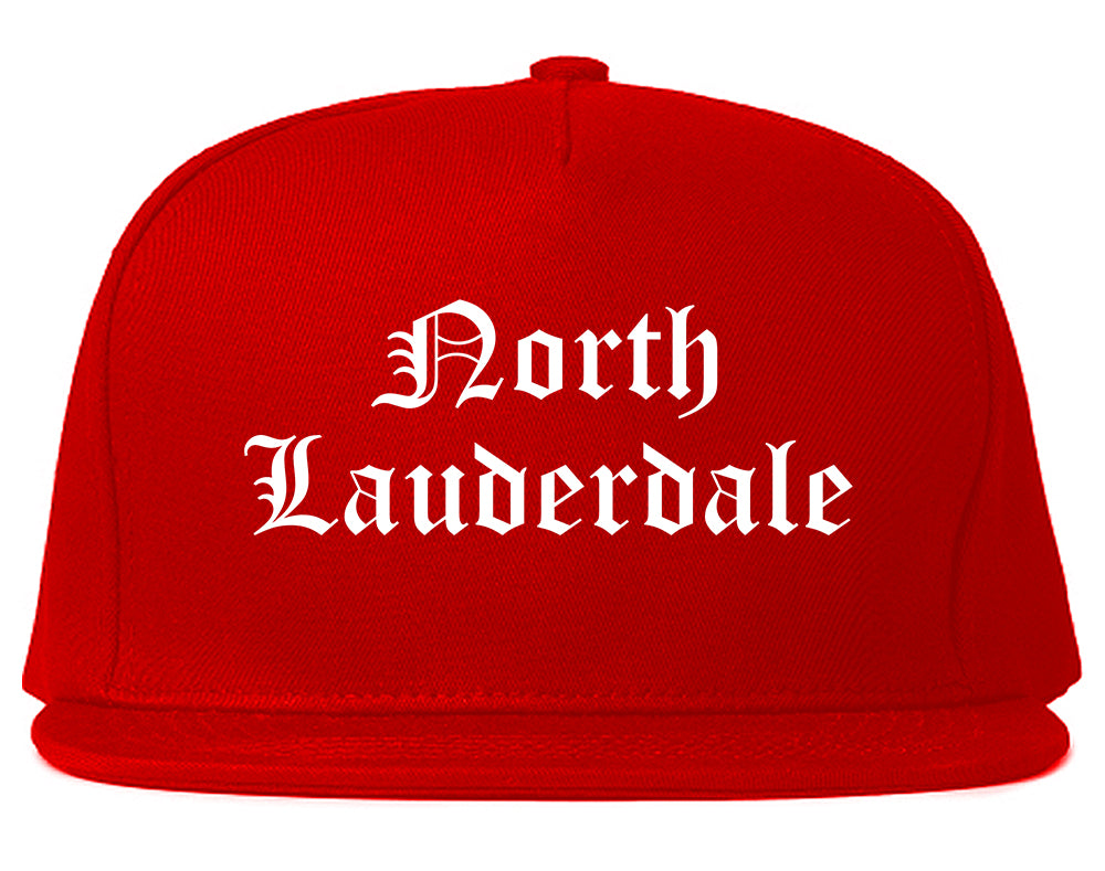 North Lauderdale Florida FL Old English Mens Snapback Hat printed by Urban Gear. Rep your city or town in one of our hats for your state.