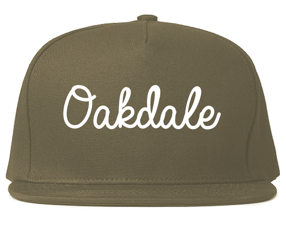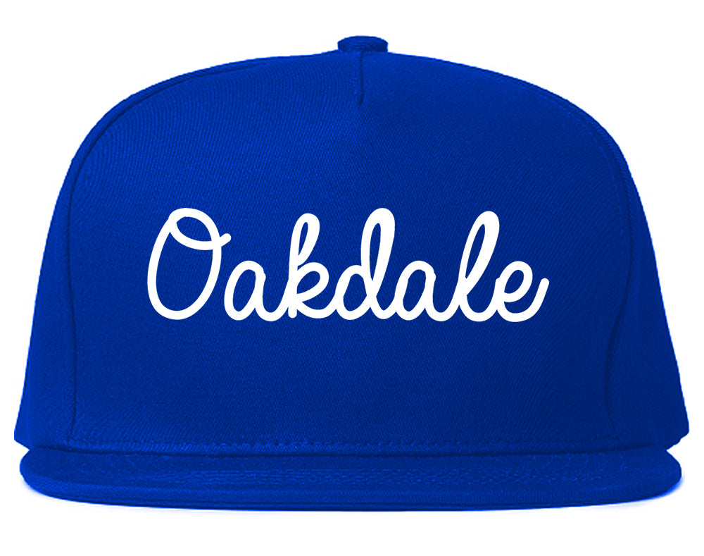 Oakdale California CA Script Mens Snapback Hat Cap printed by Urban Gear. Rep your city or town in one of our hats for your state.