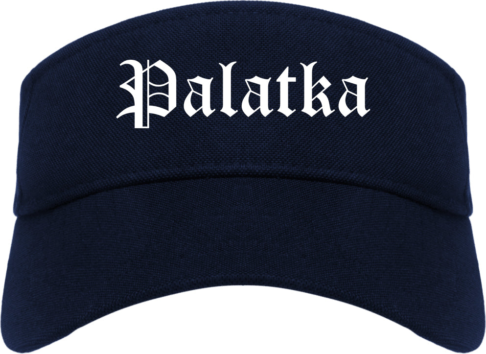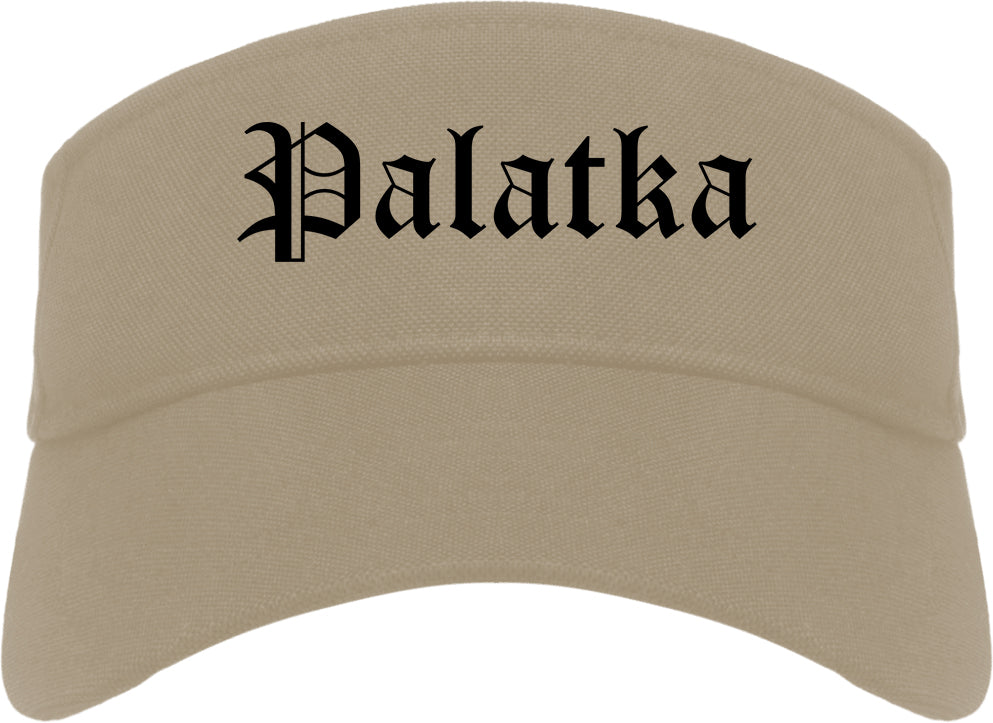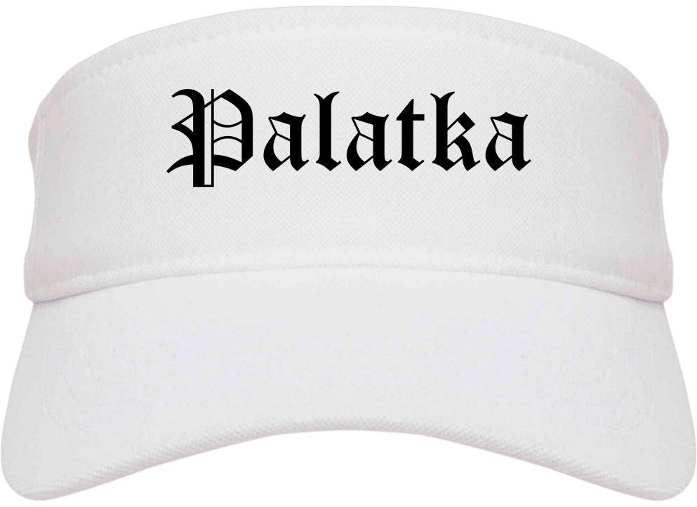 Palatka Florida FL Old English Mens Visor Cap Hat printed by Urban Gear. Rep your city or town in one of our sun visor hats for your state. Perfect for both men and women.