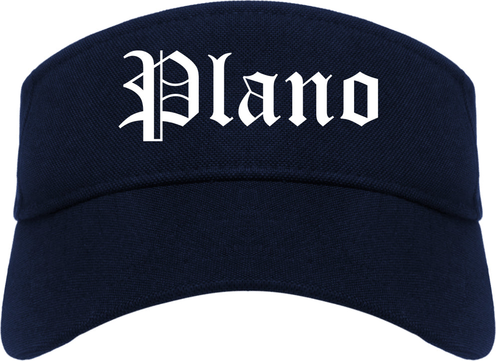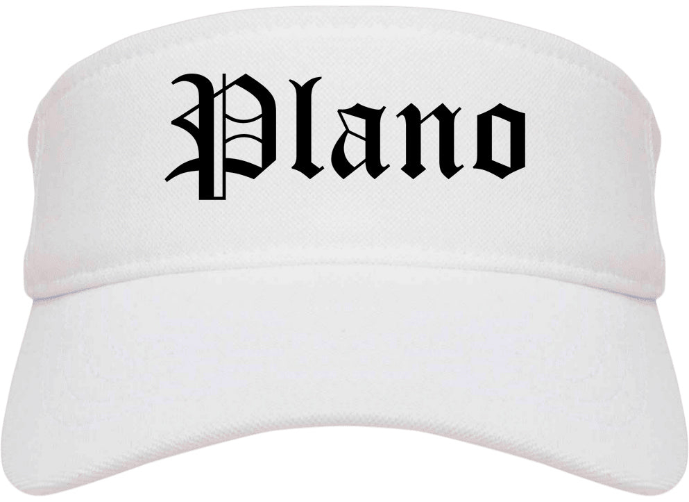 Plano Texas TX Old English Mens Visor Cap Hat printed by Urban Gear. Rep your city or town in one of our sun visor hats for your state. Perfect for both men and women.