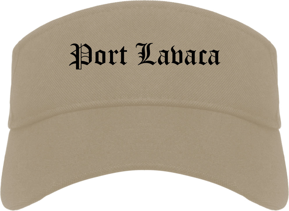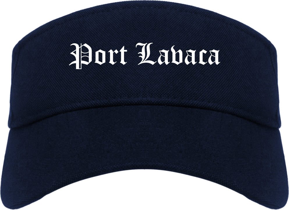 Port Lavaca Texas TX Old English Mens Visor Cap Hat printed by Urban Gear. Rep your city or town in one of our sun visor hats for your state. Perfect for both men and women.