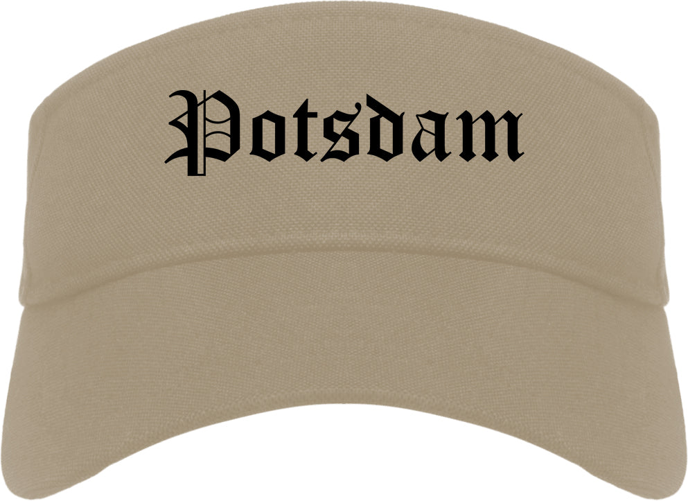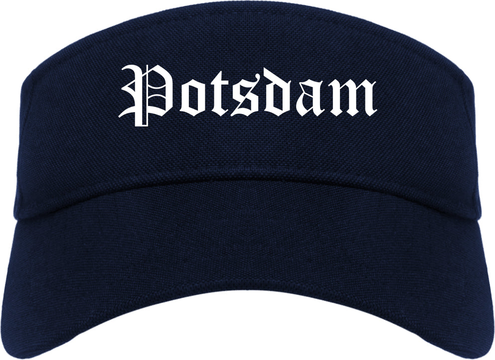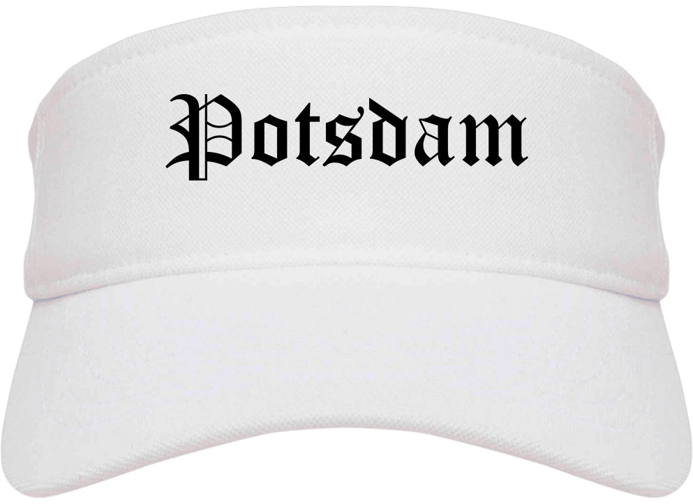 Potsdam New York NY Old English Mens Visor Cap Hat printed by Urban Gear. Rep your city or town in one of our sun visor hats for your state. Perfect for both men and women.