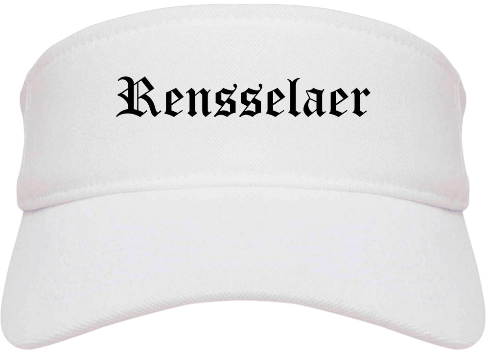 Rensselaer New York NY Old English Mens Visor Cap Hat printed by Urban Gear. Rep your city or town in one of our sun visor hats for your state. Perfect for both men and women.