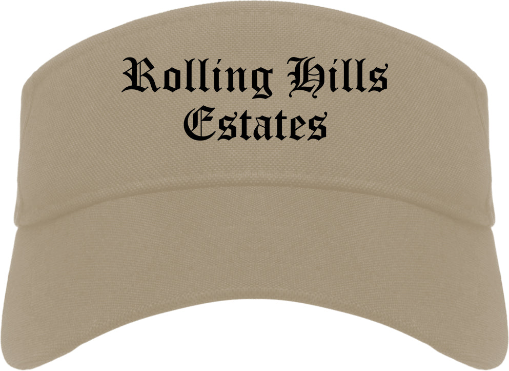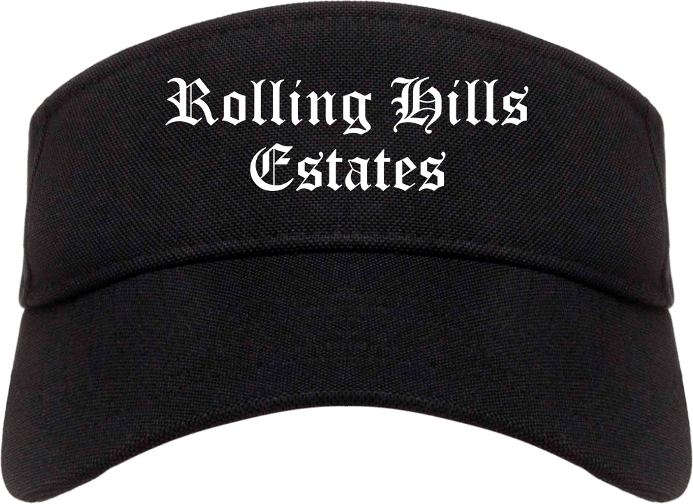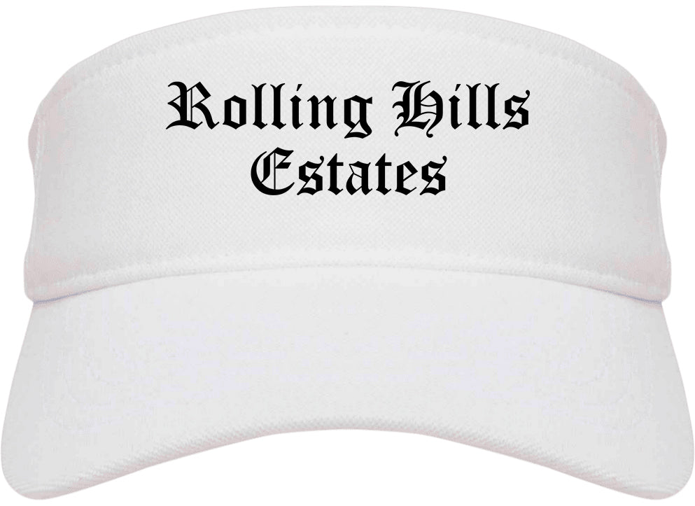 Rolling Hills Estates California CA Old English Mens Visor Cap Hat printed by Urban Gear. Rep your city or town in one of our sun visor hats for your state. Perfect for both men and women.