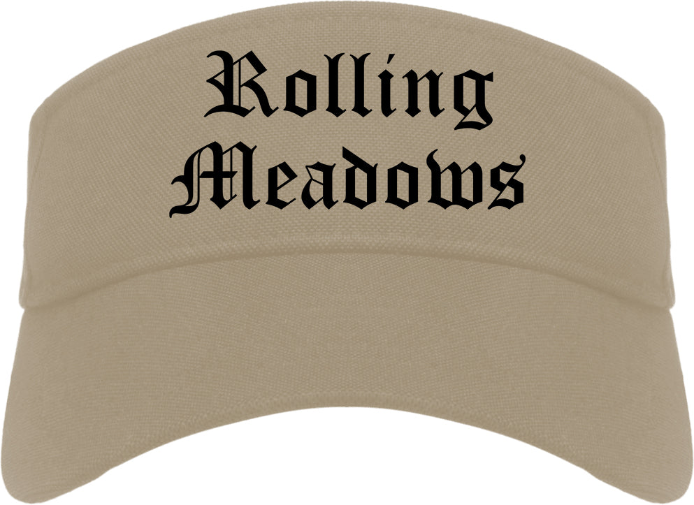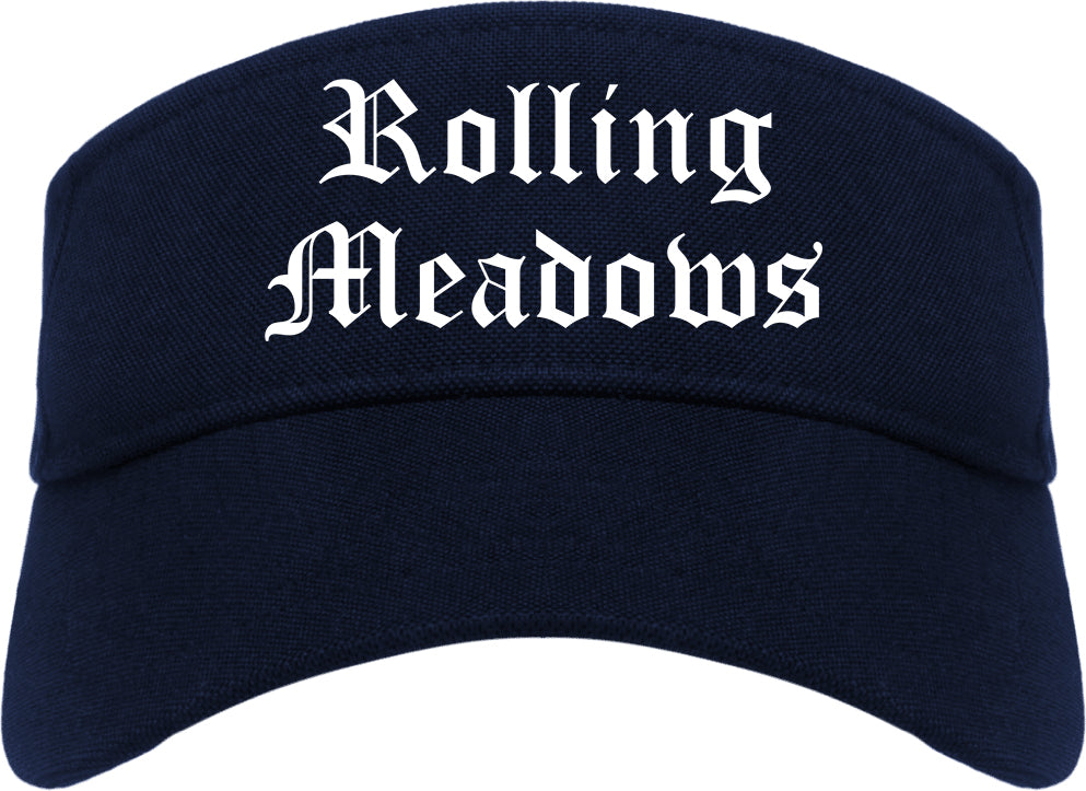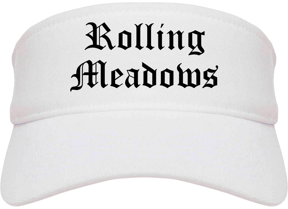 Rolling Meadows Illinois IL Old English Mens Visor Cap Hat printed by Urban Gear. Rep your city or town in one of our sun visor hats for your state. Perfect for both men and women.