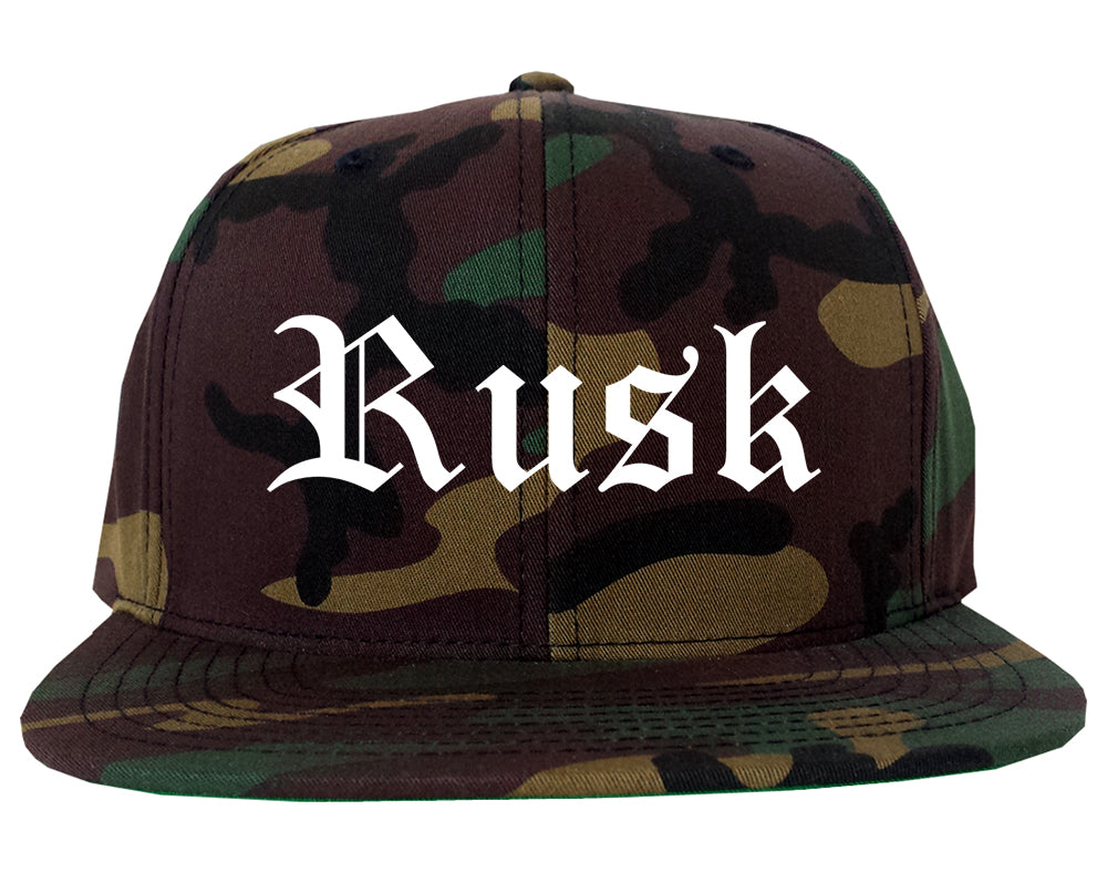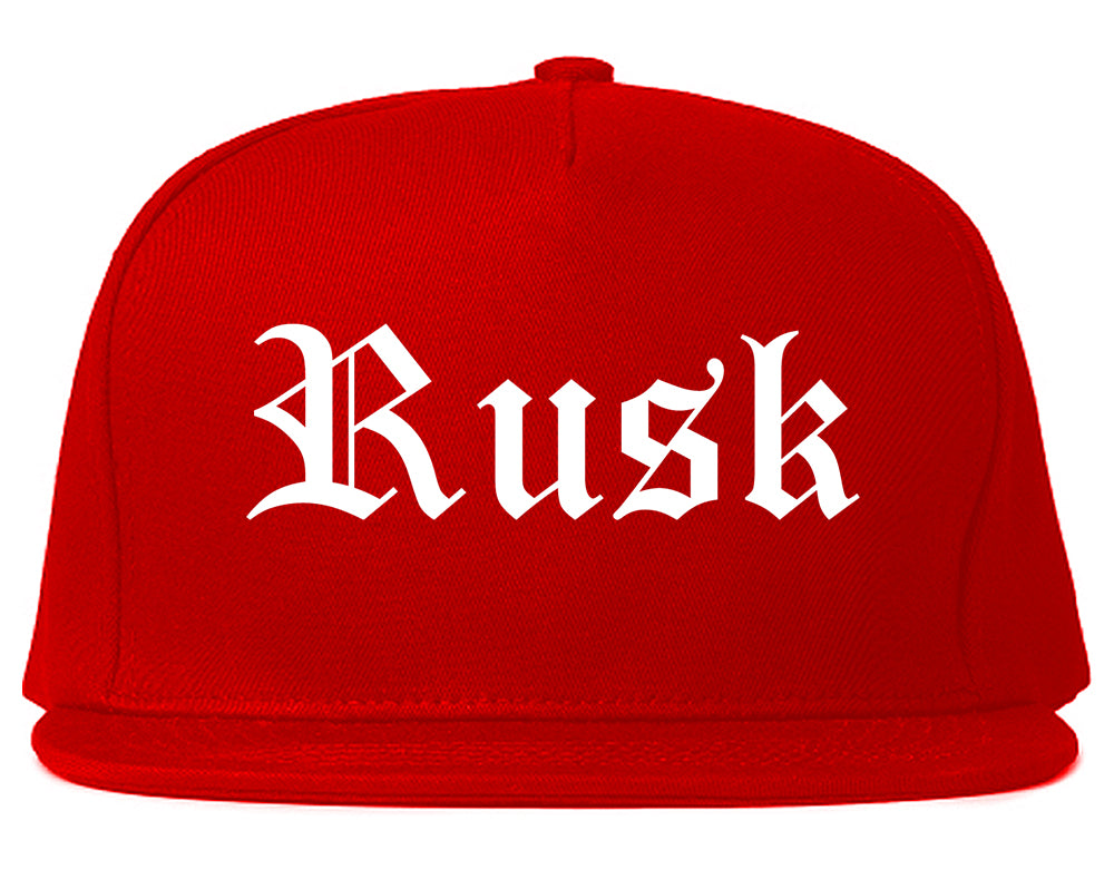 Rusk Texas TX Old English Mens Snapback Hat printed by Urban Gear. Rep your city or town in one of our hats for your state.
