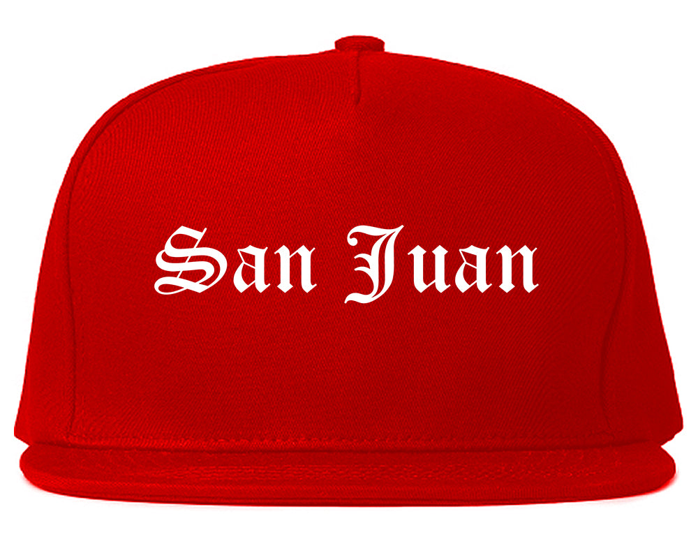San Juan Texas TX Old English Mens Snapback Hat printed by Urban Gear. Rep your city or town in one of our hats for your state.