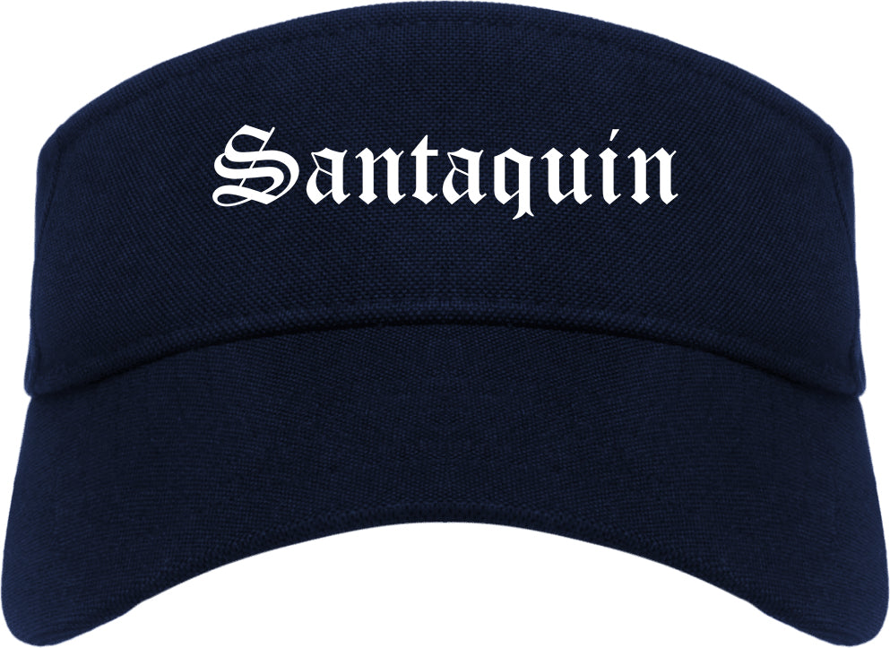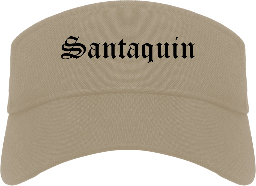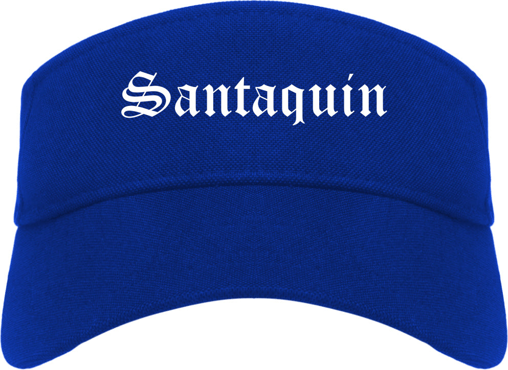Santaquin Utah UT Old English Mens Visor Cap Hat printed by Urban Gear. Rep your city or town in one of our sun visor hats for your state. Perfect for both men and women.