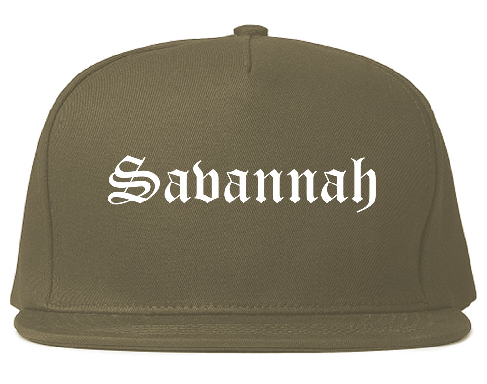 Savannah Missouri MO Old English Mens Snapback Hat printed by Urban Gear. Rep your city or town in one of our hats for your state.