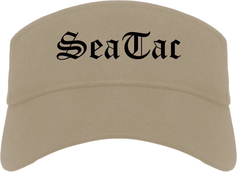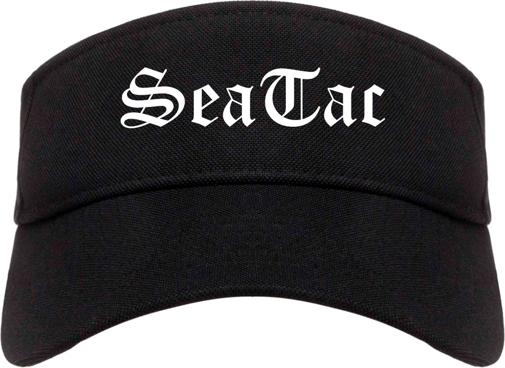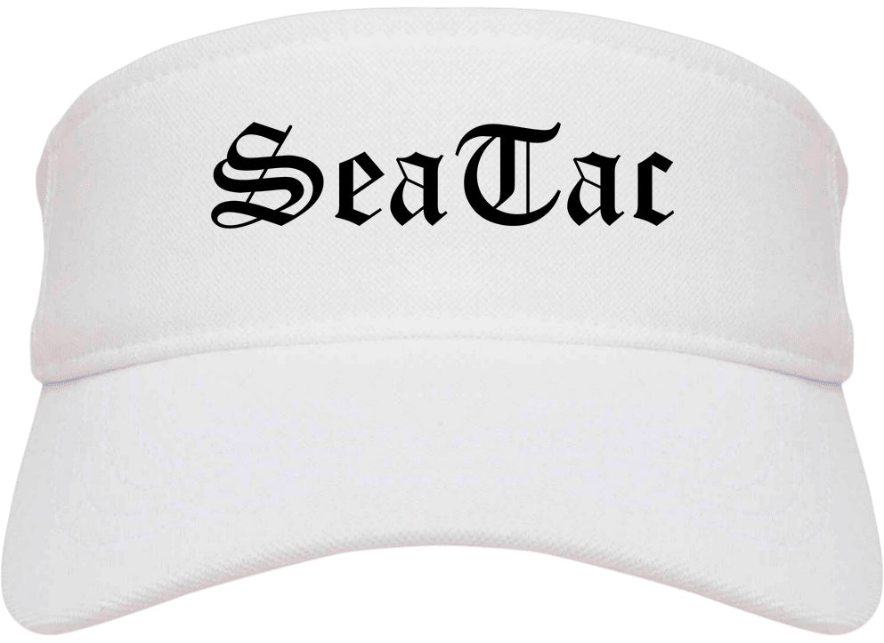 SeaTac Washington WA Old English Mens Visor Cap Hat printed by Urban Gear. Rep your city or town in one of our sun visor hats for your state. Perfect for both men and women.