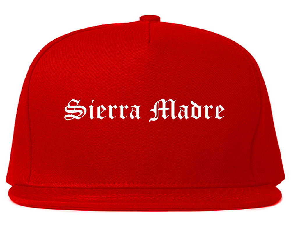 Sierra Madre California CA Old English Mens Snapback Hat printed by Urban Gear. Rep your city or town in one of our hats for your state.