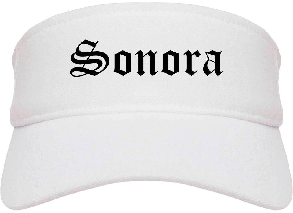 Sonora California CA Old English Mens Visor Cap Hat printed by Urban Gear. Rep your city or town in one of our sun visor hats for your state. Perfect for both men and women.