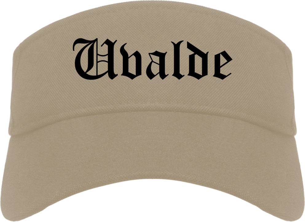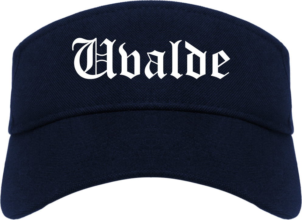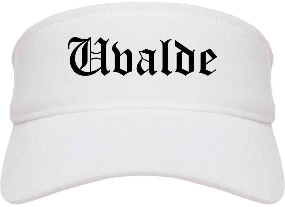 Uvalde Texas TX Old English Mens Visor Cap Hat printed by Urban Gear. Rep your city or town in one of our sun visor hats for your state. Perfect for both men and women.