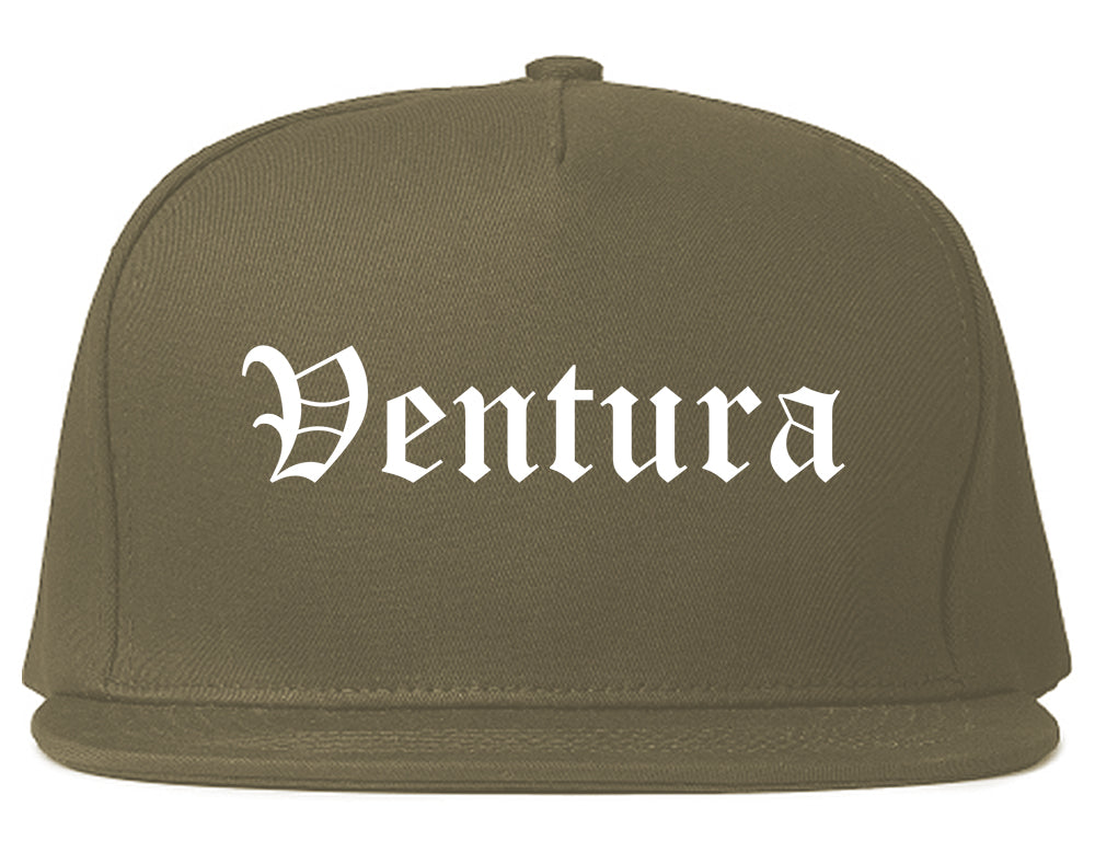 Ventura California CA Old English Mens Snapback Hat printed by Urban Gear. Rep your city or town in one of our hats for your state.