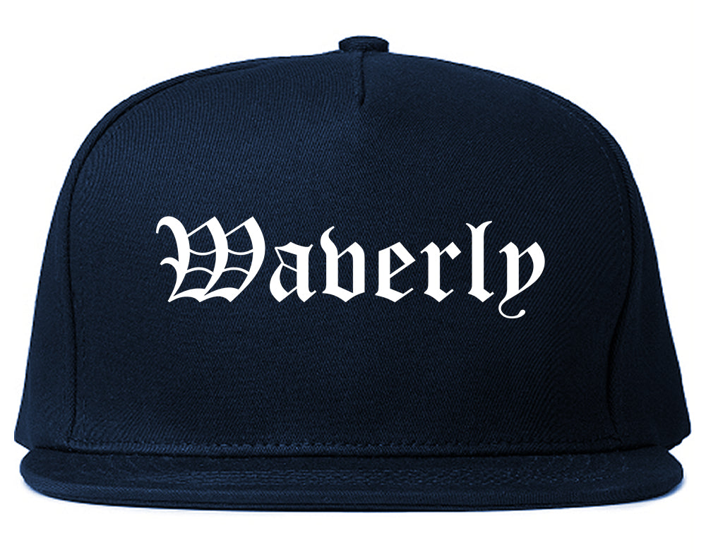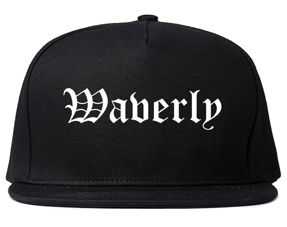 Waverly Iowa IA Old English Mens Snapback Hat printed by Urban Gear. Rep your city or town in one of our hats for your state.