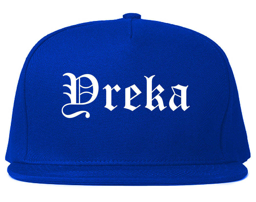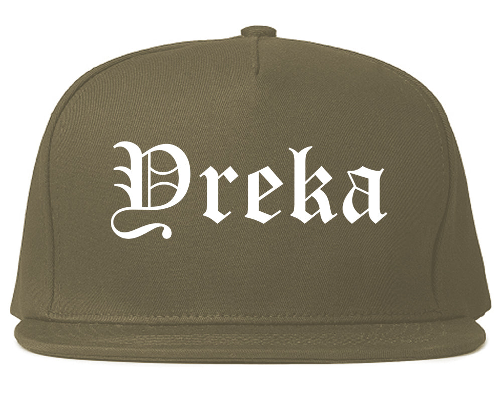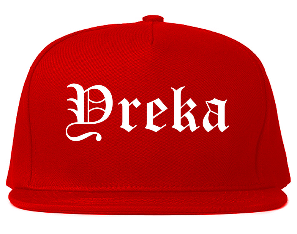 Yreka California CA Old English Mens Snapback Hat printed by Urban Gear. Rep your city or town in one of our hats for your state.